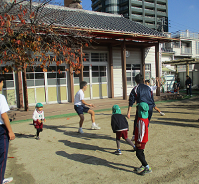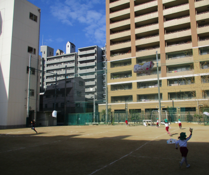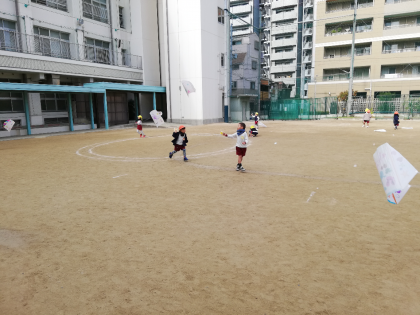 12月14日(木)、大江小学校の校庭でお正月遊びに親しむことができるように、たこ...