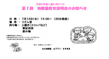 【6月22日】ぴよぴよクラブ(未就園児園庭開放)の中止について