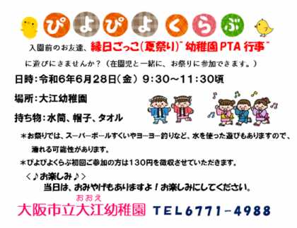 毎日暑さが続いていますが、みなさま元気でお過ごしでしょうか? 大江幼稚園の子ども...