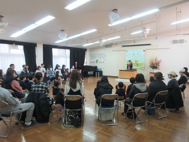 少しドキドキした様子の子どもたちでしたが、園長先生のお話を聞いたり、みんなで歌を...