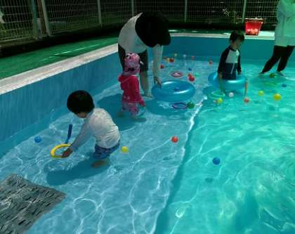 7月19日(金)、ふうちゃんらんど(未就園児)のプール開放がありました。