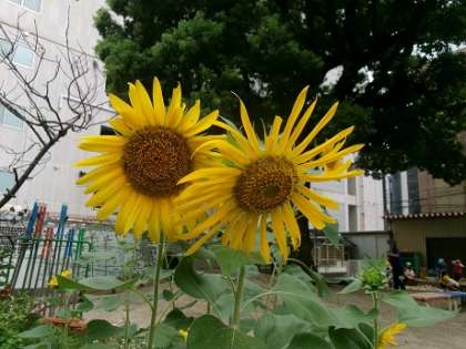 1学期に植えたひまわりの花が咲き、子どもたちを迎えてくれています。