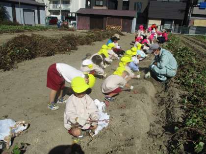 芋ほりに行ってきました♪ 公開日 2024/10/30 更新日 2024/10/30 R7年度 子どもの様子 10月21日(月)に芋ほりに行ってきました。 「うんとこしょ、どっこいしょ」と歌のリズムに合わせながらツルを引っ張ったり、しゃもじで土を掘ったりしました。 いろいろな形や大きさのお芋が掘れて嬉しそうな子どもたち。 持って帰ったお芋はおうちでおいしく食べてくださいね♪ いいね(0)