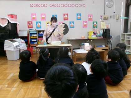 1月の保健指導では、全クラスで「うがい」について話しました。