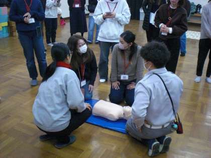 PTA人権・成人教育講座で、天王寺消防署の方に来ていただき、「救命救急講習会」を行いました。