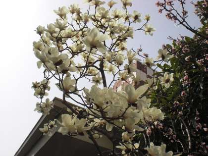 園庭にはモクレンの花やアンズの花が咲き、春の訪れを感じています。