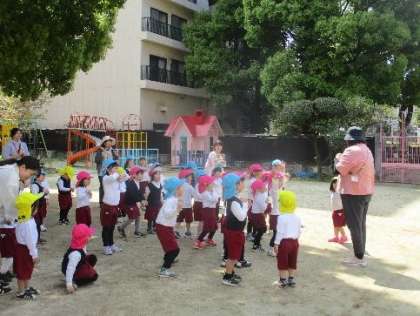 みんなで体操 公開日 2025/04/16 更新日 2025/04/16 R7年度 子どもの様子 今日は朝からいい天気で、ほし組(3歳児)はな組(4歳児)そら組(5歳児)みんなで園庭で遊びました。 新年度新しいクラス、先生にドキドキした姿の子どもたちでしたが、広い園庭で、好きな遊びも見つかり笑顔いっぱいでした。 片付けの後はみんなで体操をしました。大きなクスノキの下で元気いっぱい体を動かして体操をして楽しかったね! いいね(0)