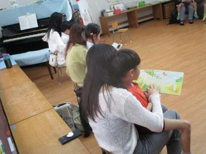 そして、今回の参観は雨だったので、室内でお家の方に絵本を読んでもらったり、遊戯室で体操をしたりお家の方ととふれあい遊びをしました。