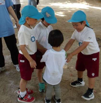 小さなお友達と嬉しそうに関わる、幼稚園の子どもたちです♪