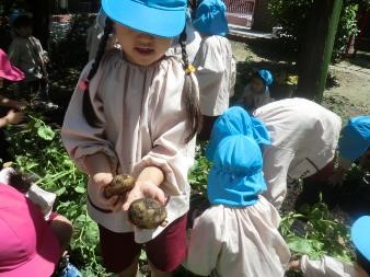 ジャガイモを収穫したよ!(1) 公開日 2025/05/29 更新日 2025/05/29 飼育栽培日誌 そら組とはな組が植えたジャガイモが 大きく育ったので、みんなで収穫しました。 うんとこしょ!どっこいしょ! 友達と協力して一緒に掘りました。 おいしそう!ポテトフライにしたい! 大きなジャガイモに驚いたり、 小さなサイズにも大喜びな子ども達でした。 いいね(0)