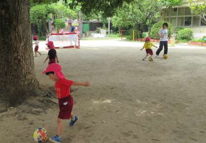 今年度初めてのサッカー遊びでしたが、元気いっぱい体を動かして遊んでいましたよ!