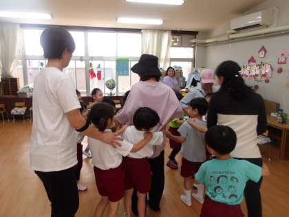 保育参加が始まりました♪ 公開日 2025/06/23 更新日 2025/06/23 R7年度 子どもの様子 生魂幼稚園では、幼稚園でのお子様の様子を見て一緒に活動していく中で、幼稚園の教育内容をより理解していただこうと、保育参加を実施しています。 お家の方と一緒に泥んこ遊びやふれあい遊びをしてとても嬉しそうな子どもたち♪ 19日から3日間行っています。保護者の皆様も、おうちの方先生として、めいっぱい子どもたちと遊ぶことを楽しんでくださいね! いいね(0)