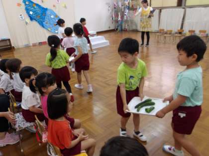 七夕のふれあい製作をした後は、七夕のつどいをしたり、焼納祭に参加したりして七夕に親しみました。