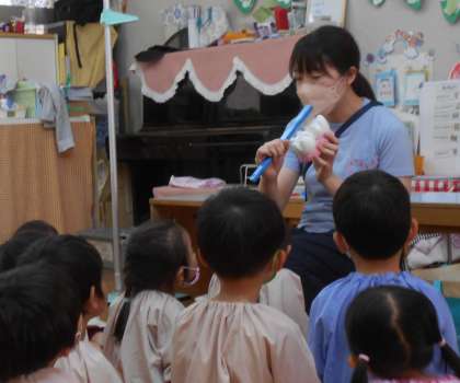 はな組、そら組で「歯みがき」について保健指導を行いました。