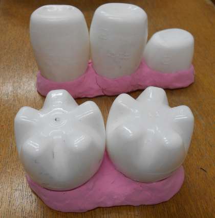 歯の模型を使って、前歯と奥歯のみがき方を知らせました。
