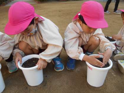 子ども達は球根を見ると「玉ねぎみたいだね」と話をしていました。