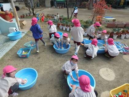 遊具を洗ったり、自分のロッカーや、靴箱、保育室の床などを拭いたりしました。