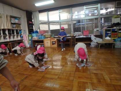 終業式前日、幼稚園の子ども達全員で大掃除をしました。