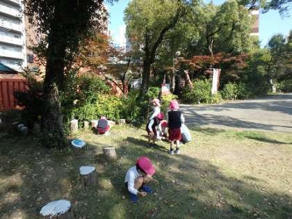 幼稚園の近くに、ドングリがたくさん落ちているところがありました。