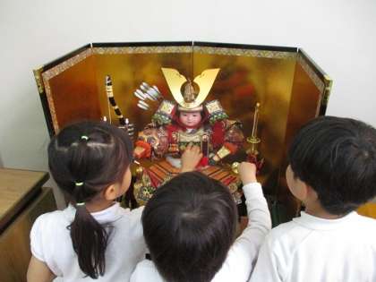 五月人形を飾りました 公開日 2023/04/24 更新日 2023/04/24 R5年度 子どもの様子 遊戯室に五月人形を飾りました。 鎧や兜に興味津々の子どもたち。「かっこいいね」「弓もあるよ」と、子ども同士で話していました。 いいね(0)