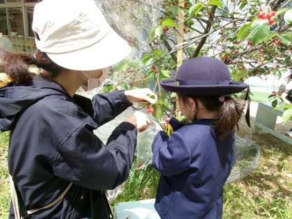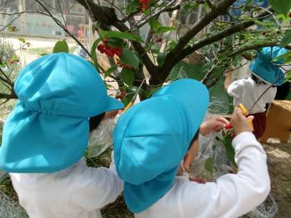 だんだん赤くなっていくサクランボを見ながら、毎日収穫を楽しみにしていた子どもたち。