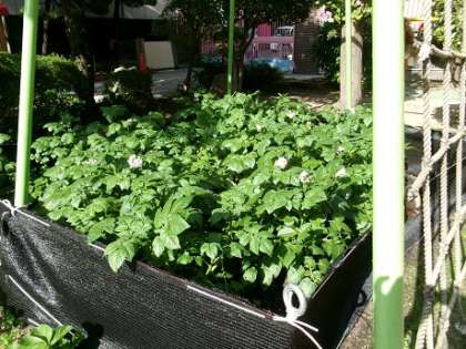 昨年度の冬に、今のそら組とはな組の子どもたちが植えたジャガイモです。収穫できるのが待ち遠しいですね♪