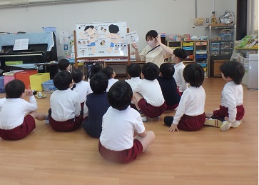 そら組で、「体の名前と健康診断」について保健指導をしました。