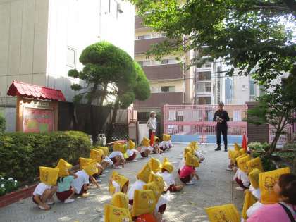 今回の訓練では、消防署の方が来てくださり、安全な避難の方法や、消火器の使い方を教えていただきました。