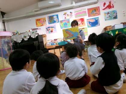 ワニのワーニーの歯には食べかすがたくさん付いています。子どもたちはそれを見て「むし歯になっちゃうよ」「歯みがきしたらいいねん」と話していました。