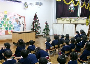 歯科園医 佐藤先生が子どもたちに向けて、歯みがきの大切さについてお話してくださいました。