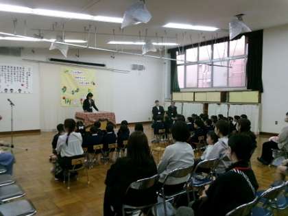 担任の先生や新しく着任された先生方の紹介があり、子どもたちは元気よく「よろしくお願いします」とあいさつをしていました。