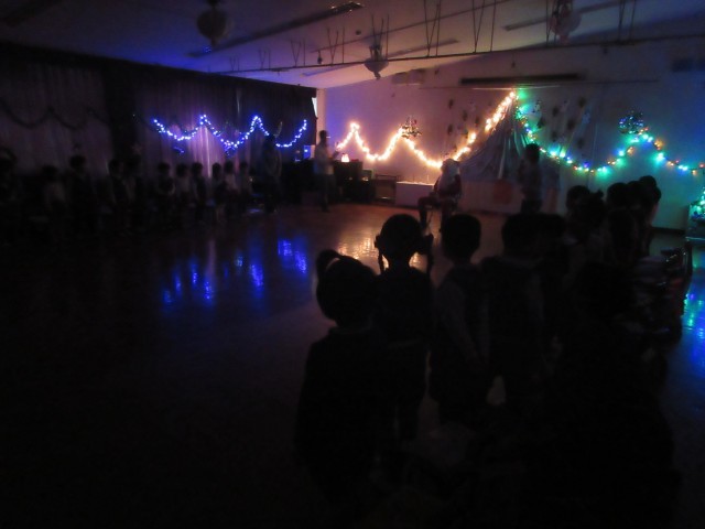 ツリーや壁面のライトをつけると、会場いっぱいに「すごーい!」「きれい!!」という歓声が響きました。