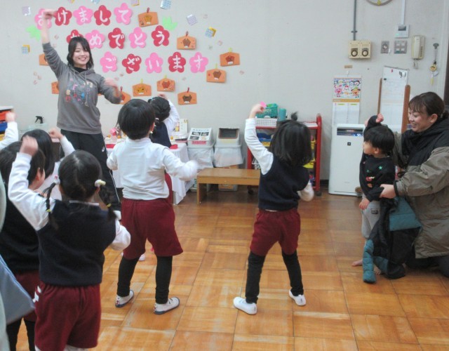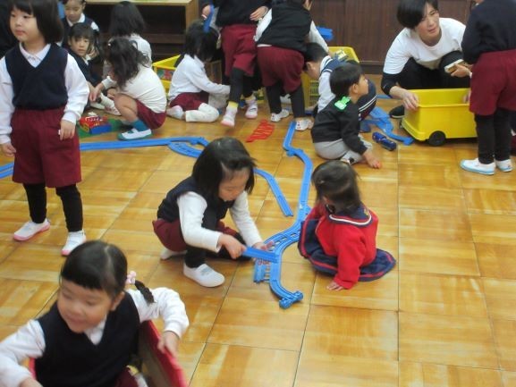 小さなお友達と電車やブロックで遊んだり、一緒に体操をしたりして、嬉しそうな子どもたちでした!