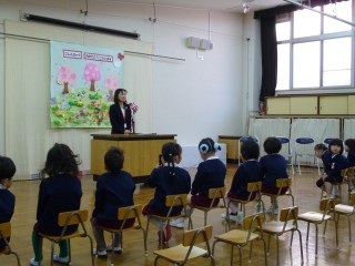 「ありがとう・ごめんなさいを自分から伝えましょう」とお話があり、子どもたちも真剣に耳を傾けていました。