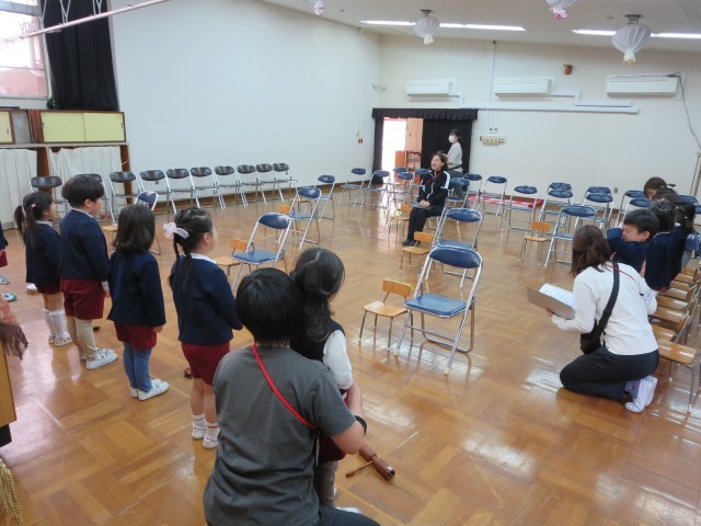 今日は、子どもたちと入園式ごっこをしました。幼稚園は楽しいところだなと思ってもらえるように、手遊びや歌の準備をしました。