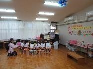 4歳児はな組は先生と一緒に園歌や、「先生とお友だち」の歌を歌っていましたよ。