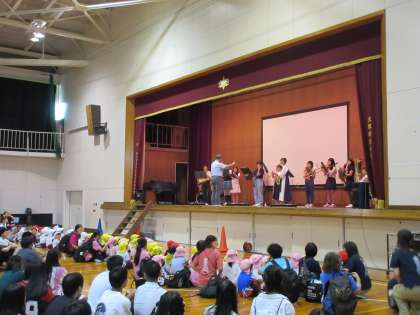 吹奏楽部の演奏と、ダンス部の演技は大迫力で、子どもたちは、手拍子をしたり、体を揺らしたりしながら、楽しみました。