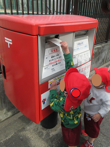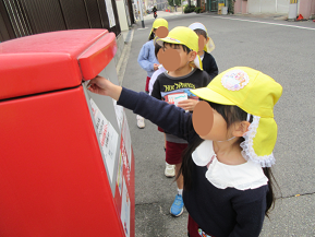 幼稚園の近くのポストまで、お友達と手をつないで向かいました。