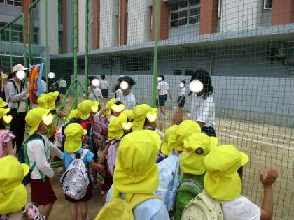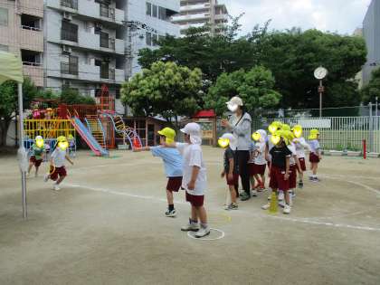 中学生のお兄さん・お姉さんが、クラスの仲間と力を合わせ、息を合わせて頑張る姿や諦めずに最後まで頑張る姿、勝っても負けても拍手でお互いを称えあう姿を間近で見ることができ、きく組(5歳児)の子どもたちにとってよい刺激になりました。