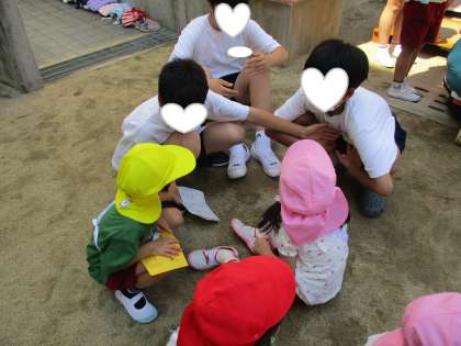 「なみはやまつり」を一緒に回ってくれるお兄さん・お姉さんが子どもたちの名前を呼びながら迎えに来てくれました。ペアが決まると、お兄さん・お姉さんから積極的に自己紹介をしてくれました。