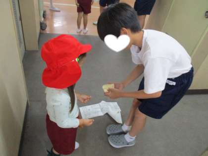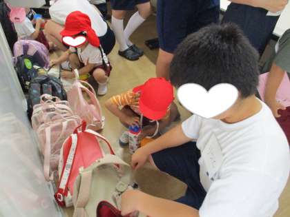 トイレに行った園児の脱いだ上靴を履きやすいように置きなおしてくれたり、トイレから園児が出てくると、持っていたしおりをすぐに床に置いて、園児の手をハンカチで優しく拭いてくれたり、園児のことを思いやってくれるお兄さんの姿がありました。
