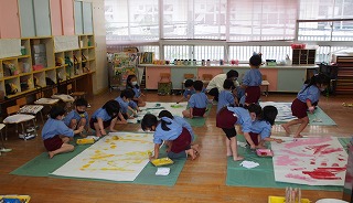 ローラー遊びをしたよ 公開日 2022/04/15 更新日 2022/04/15 新規カテゴリ 5歳児がローラー遊びをしました。 コロコロ思い切りローラーを転がしたよ。 白い布が、素敵な色になったよ。 いいね(0)