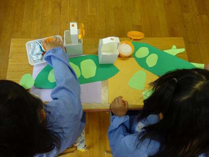 つくり終わった後は、みんなで食べるまねっこをして、大喜びでした。