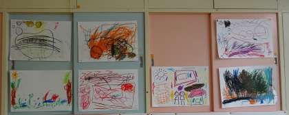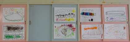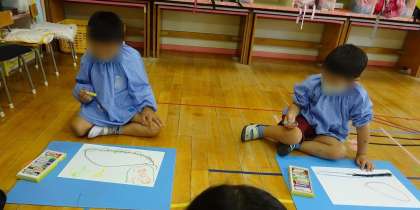 楽しかったことを思い出して、クレパスで絵をかきました。