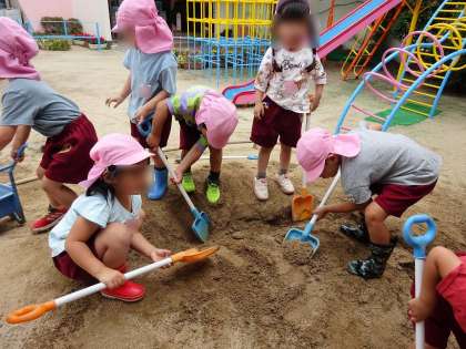 4歳児 土山を掘るぞ! 公開日 2022/06/15 更新日 2022/06/15 幼稚園日記 さくら組が、土山を掘っていると・・・ 「僕もやる!」「スコップ、いっぱい持ってくるね!」 と、友達と一緒に力を合わせて、大きな穴を掘りました。 「いっぱい掘ったら、海まで届くんちゃう?」 「魚もいっぱい、出てくるんじゃない?」 イメージがどんどん広がって友達とやりとりをしながら楽しく遊んでいました。 いいね(0)