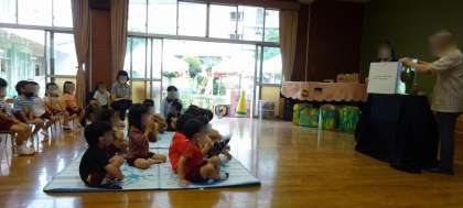 絵本の読み聞かせをしてもらいました 公開日 2022/06/24 更新日 2022/06/24 幼稚園日記 6月21日、なにわ絵本の会の方に、絵本の読み聞かせをしてもらいました。 「おめんです」では、だれがお面をかぶっているのか、ワクワクしながら見ていました。 中国語で「ぴょーん」も読んでもらい、言葉のリズムの楽しさを感じていました。 また、読み聞かせしてもらいたいですね。 いいね(0)