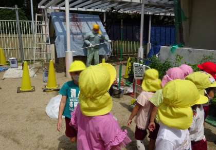 ブドウ棚や手洗い場など、ペンキを塗ってくれています。