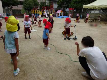 きく組(5歳児)が、園庭で大縄跳びをしていると、