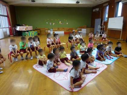 うめ組・さくら組で、絵本「わにわにのおでかけ」を見ました。