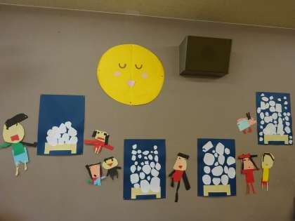 絵本「たぬきのおつきみ」をみたり、